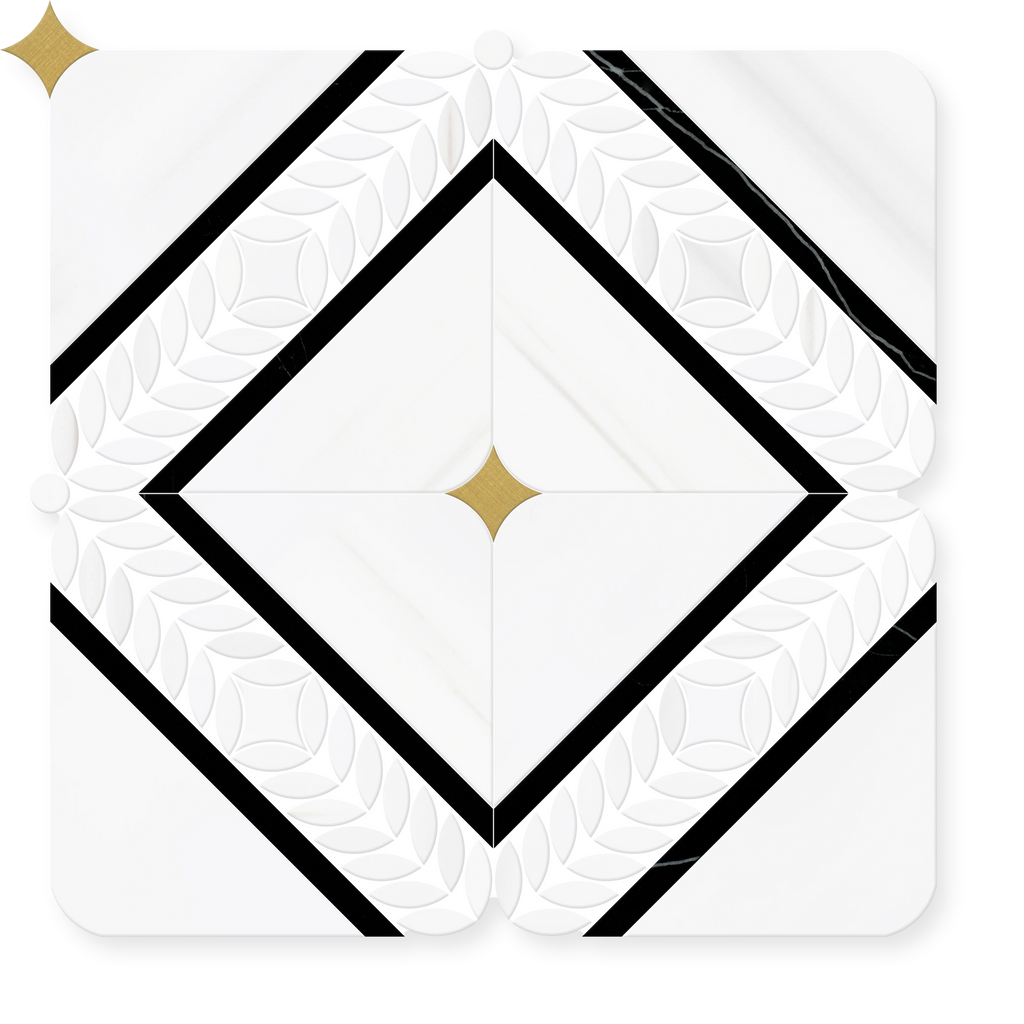 Aurelia - Waterjet & Hand-Cut Marble Mosaic Honed and Polished 10" x 11.5"