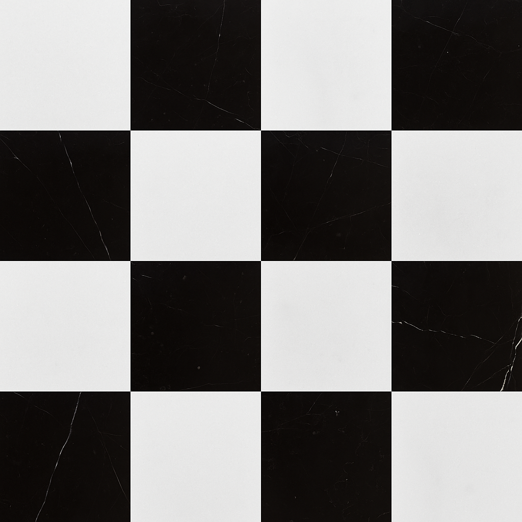 Nero Marquina and Thassos White 12x12 Marble Checkerboard Tile