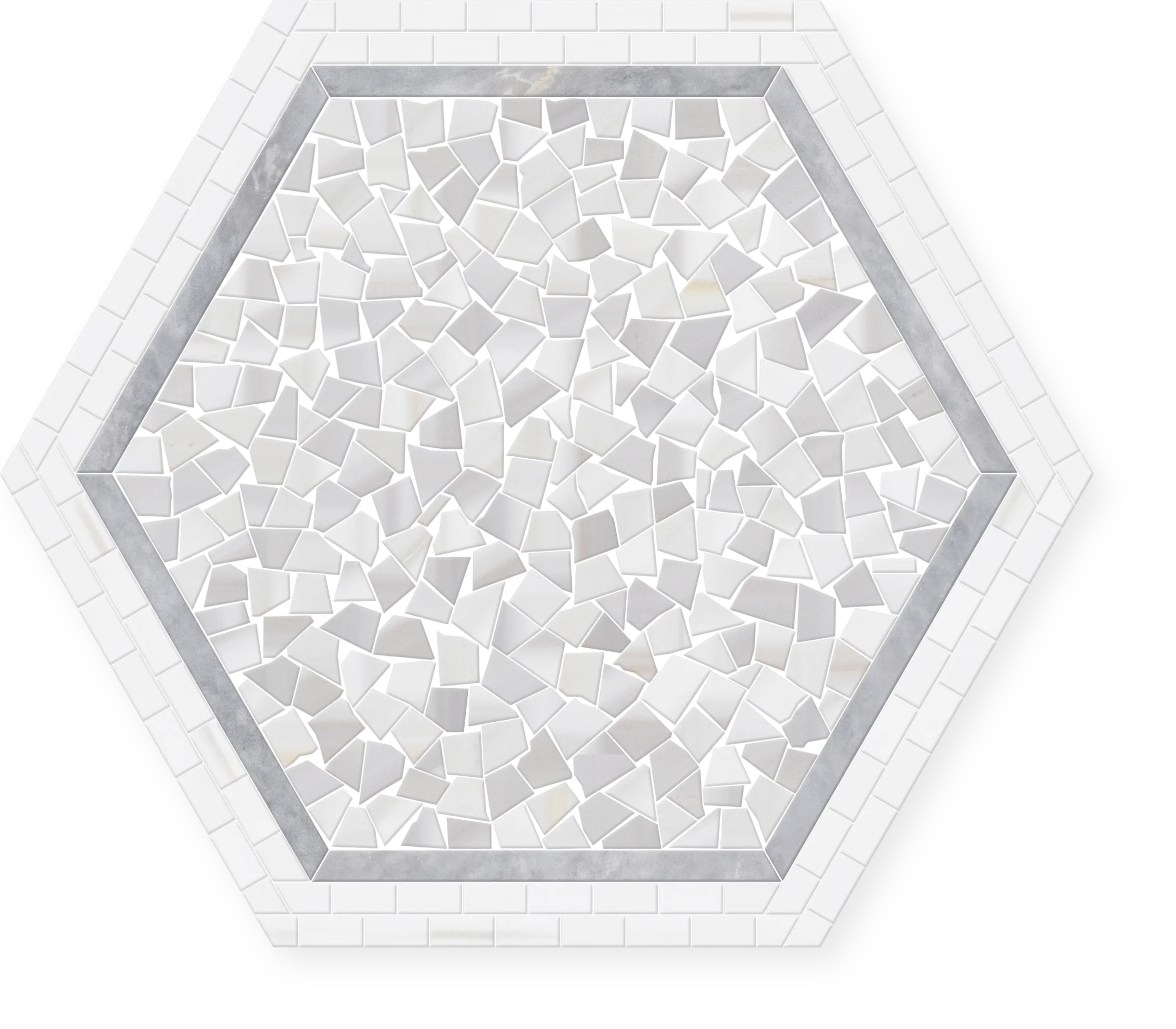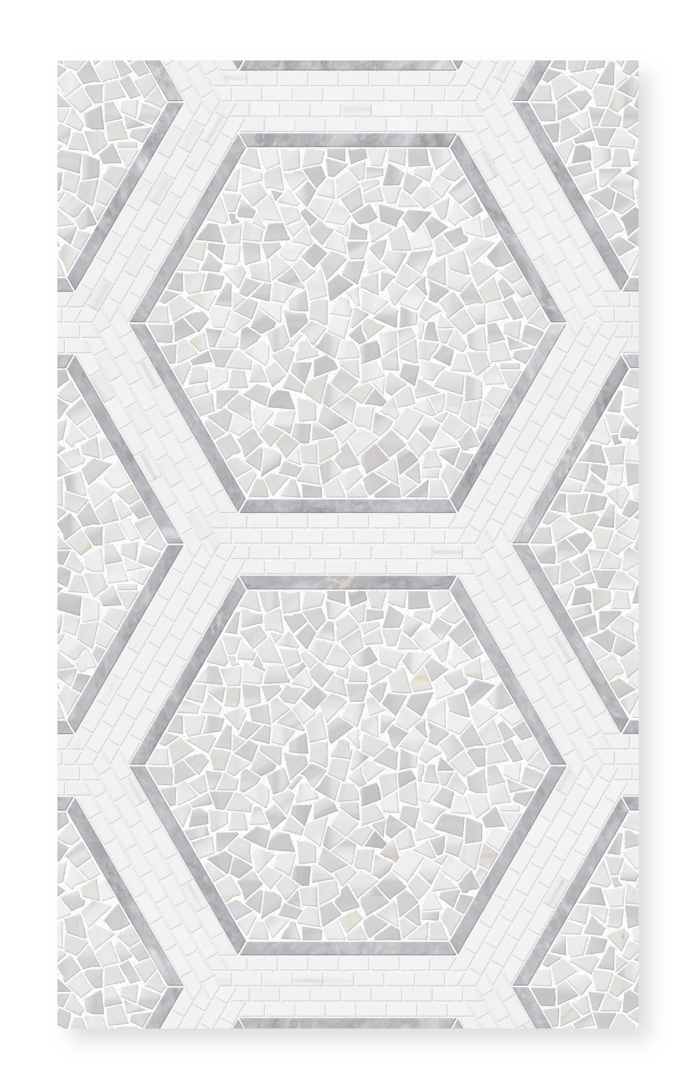 Hexagon Nexus Hand-Cut Marble Mosaic Sample showcases the exceptional artistry of hand-cut marble craftsmanship. This sample features an elegant hexagon pattern in premium marble, allowing you to experience the quality and beauty before your full order.