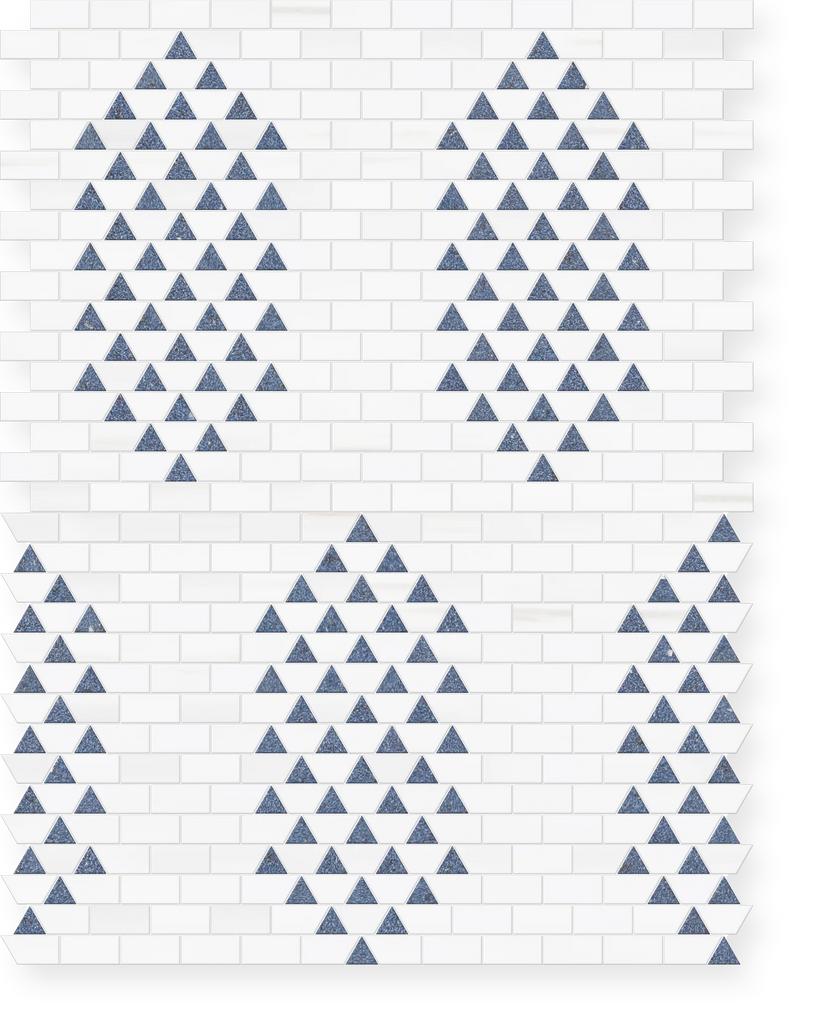Bloom is a stunning hand-cut marble mosaic that brings timeless elegance and artisanal quality to any space. Each piece is carefully crafted to showcase the natural beauty of premium marble with precise geometric patterns.