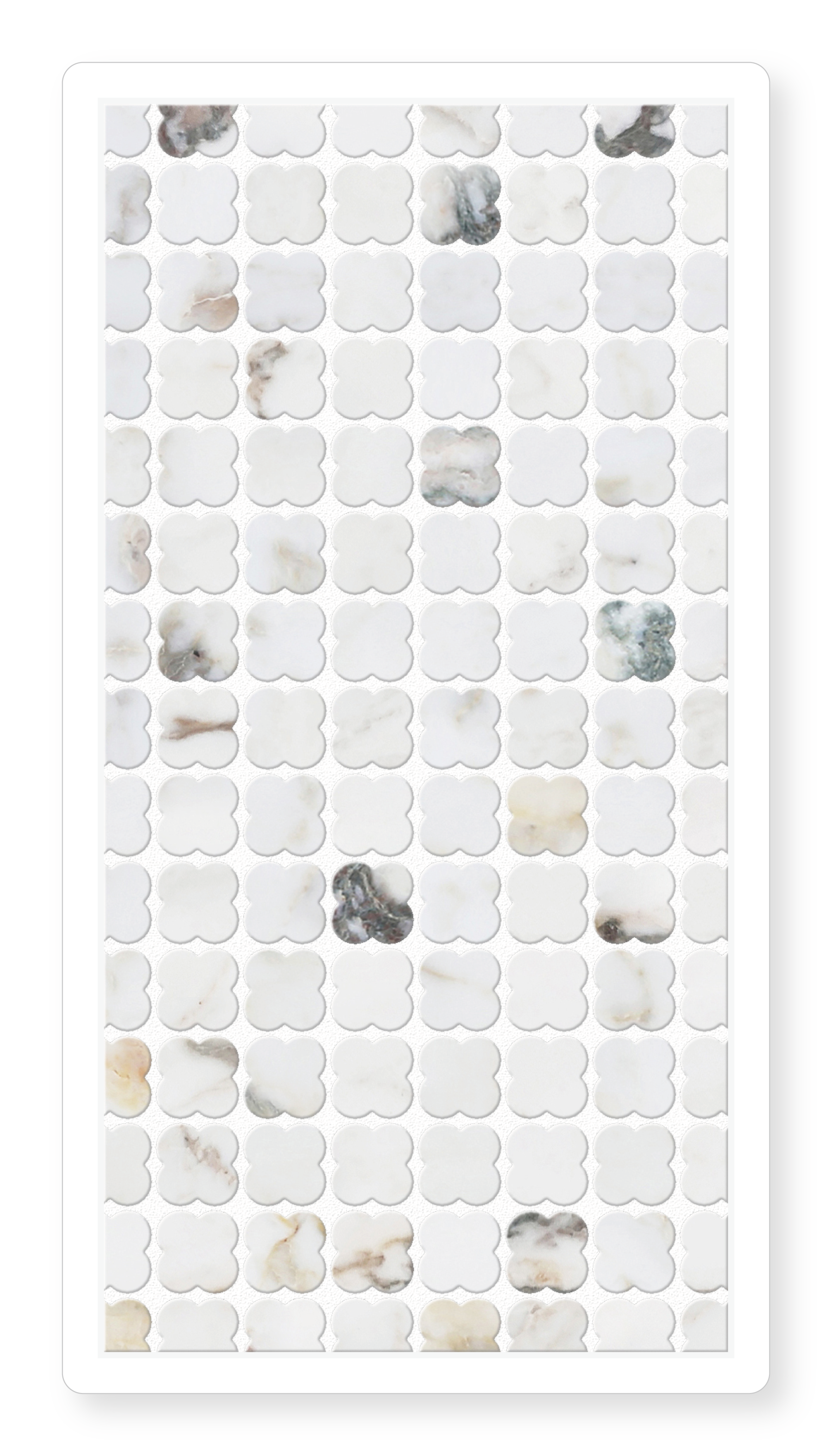 Florin is an exquisite hand-cut marble mosaic crafted by specially trained artisans. Each piece showcases exceptional skill and attention to detail, featuring ten premium marble and limestone varieties with harmonious honed and polished finishes that create a sophisticated floral-inspired design with rich color variation and timeless elegance.
