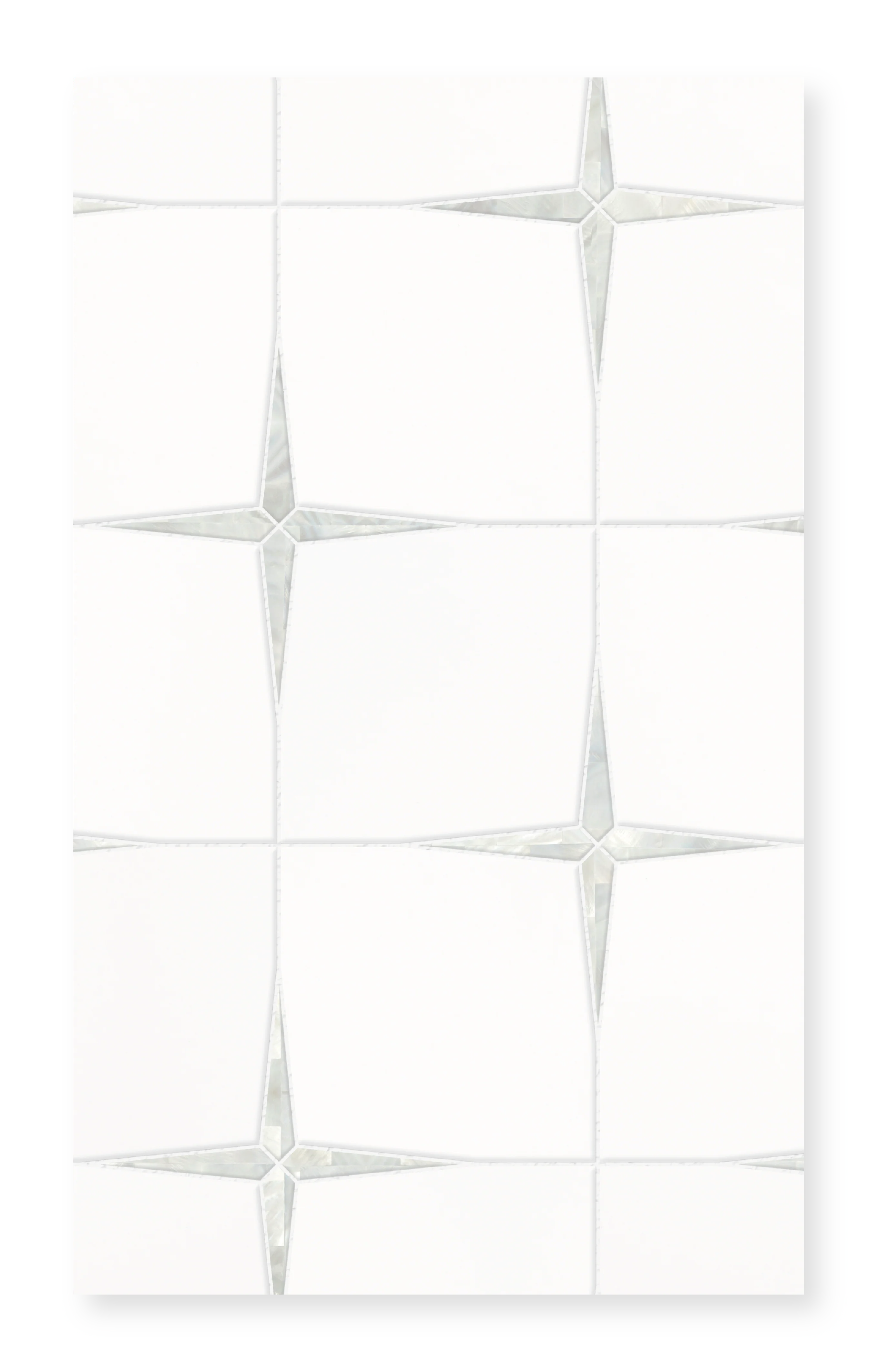 Experience the precision of waterjet technology combined with the natural beauty of Bianco Dolomite marble, White Thassos, and the iridescent shimmer of Mother of Pearl. Enhanced with luxury gold glazed lava stone accents, Magnifica brings unparalleled elegance to your walls and vertical surfaces.