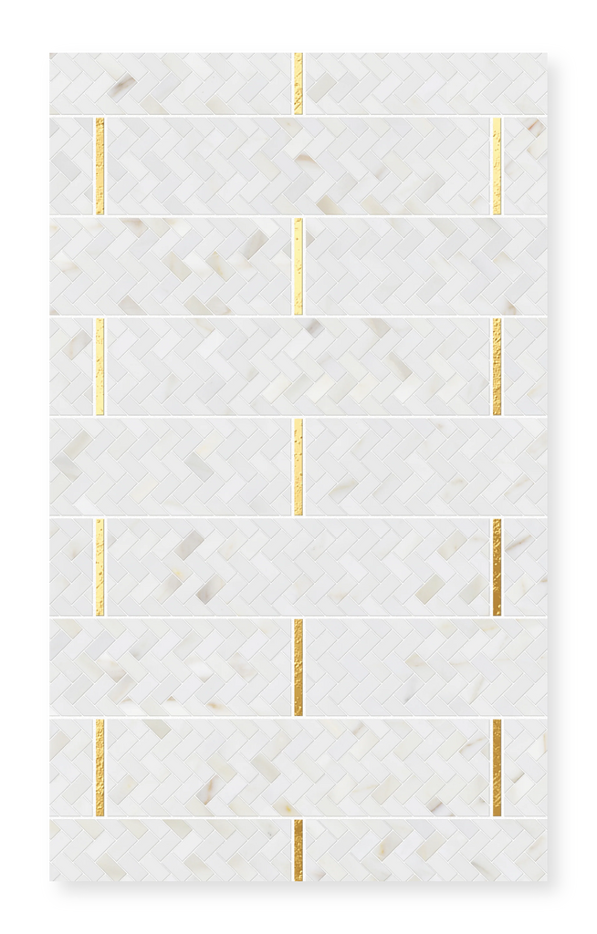 Regalia - Hand-Cut Herringbone Subway Marble Mosaic 9.5" x 9.6" Sample