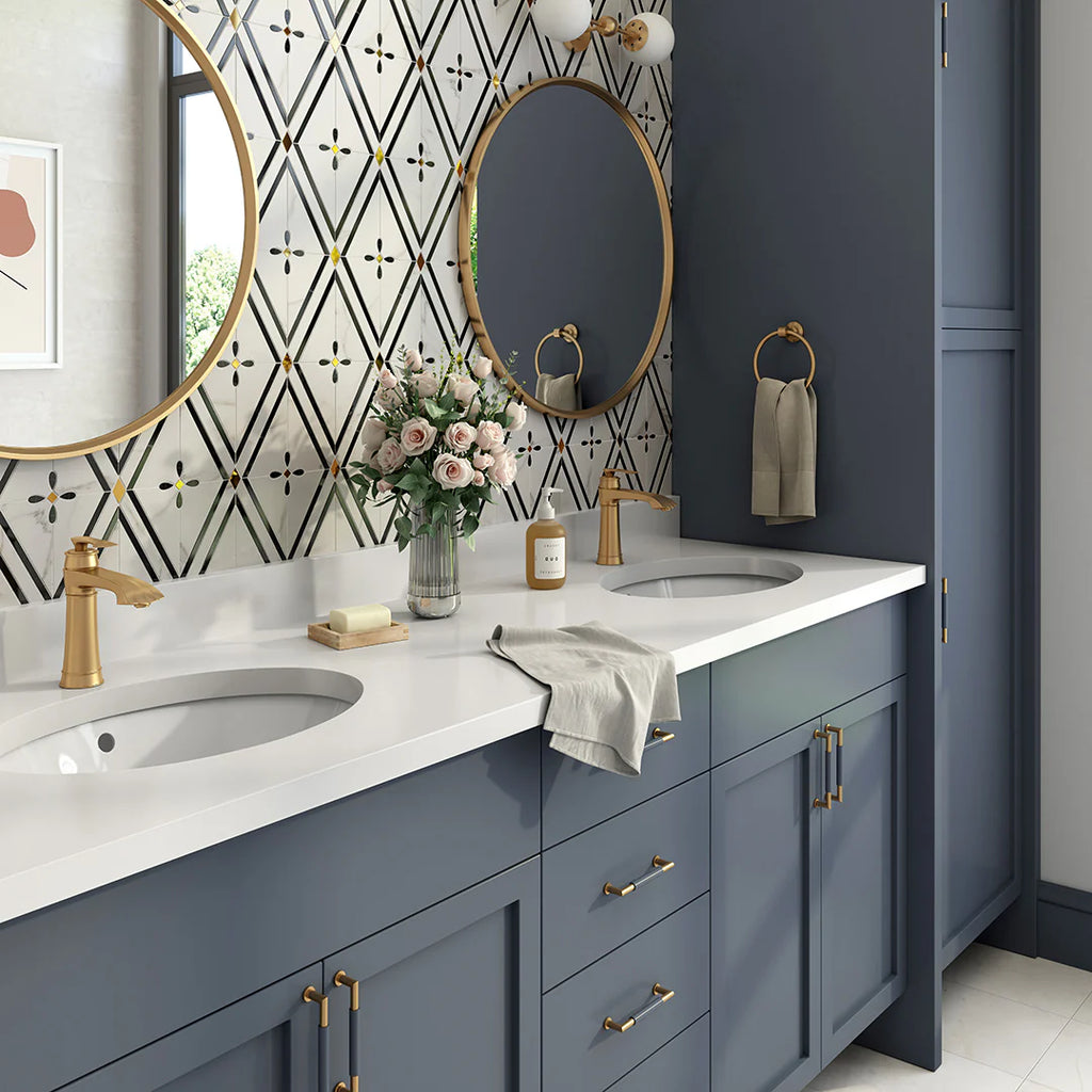 Rocella is a stunning marble mosaic that combines the precision of waterjet technology with the artistry of hand-cutting by specially trained artisans. This exceptional design features luxurious brass accents that add warmth and contemporary sophistication to the classic marble palette.