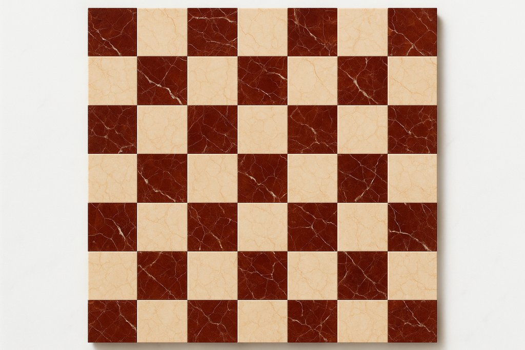 Iconic. Bold. Timeless. Our Rojo Alicante and Crema Marfil Select marble checkerboard tile brings instant drama and elegance to any space.