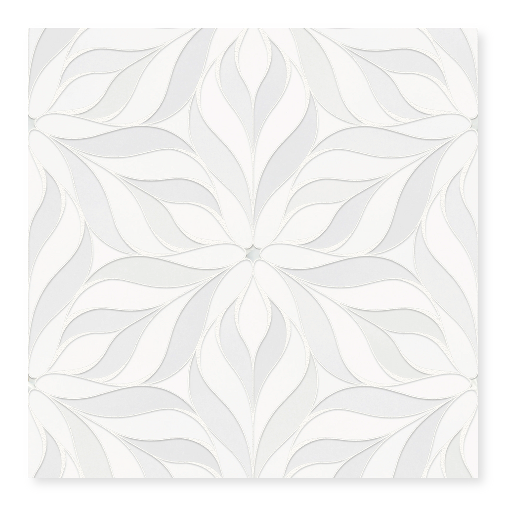 Exquisite. Intricate. Timeless. Our Seraphina waterjet marble mosaic transforms any space into a work of art. This stunning floral-inspired pattern features precision-cut premium marbles and mother of pearl.