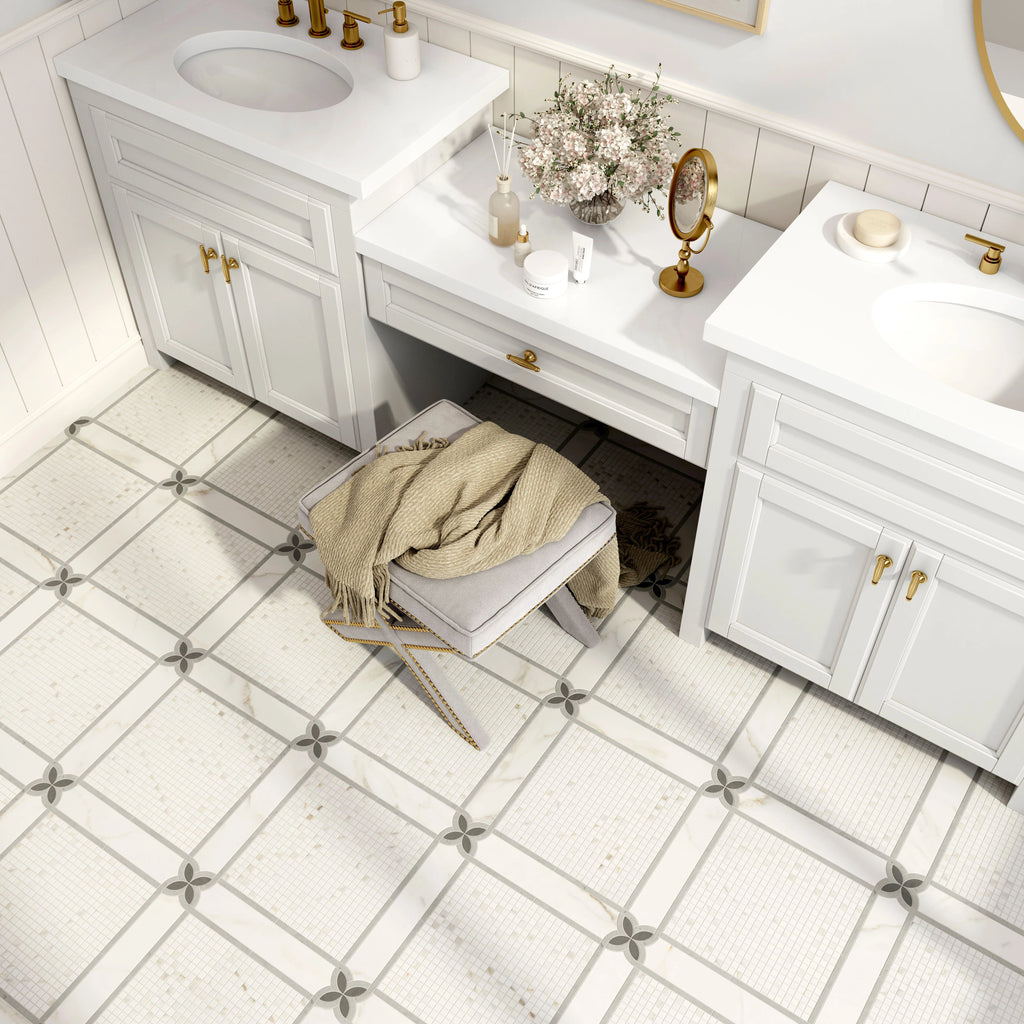 Sereno - Waterjet and Hand-Cut Marble Mosaic 12.4" x 12.4"
