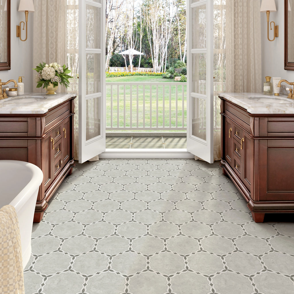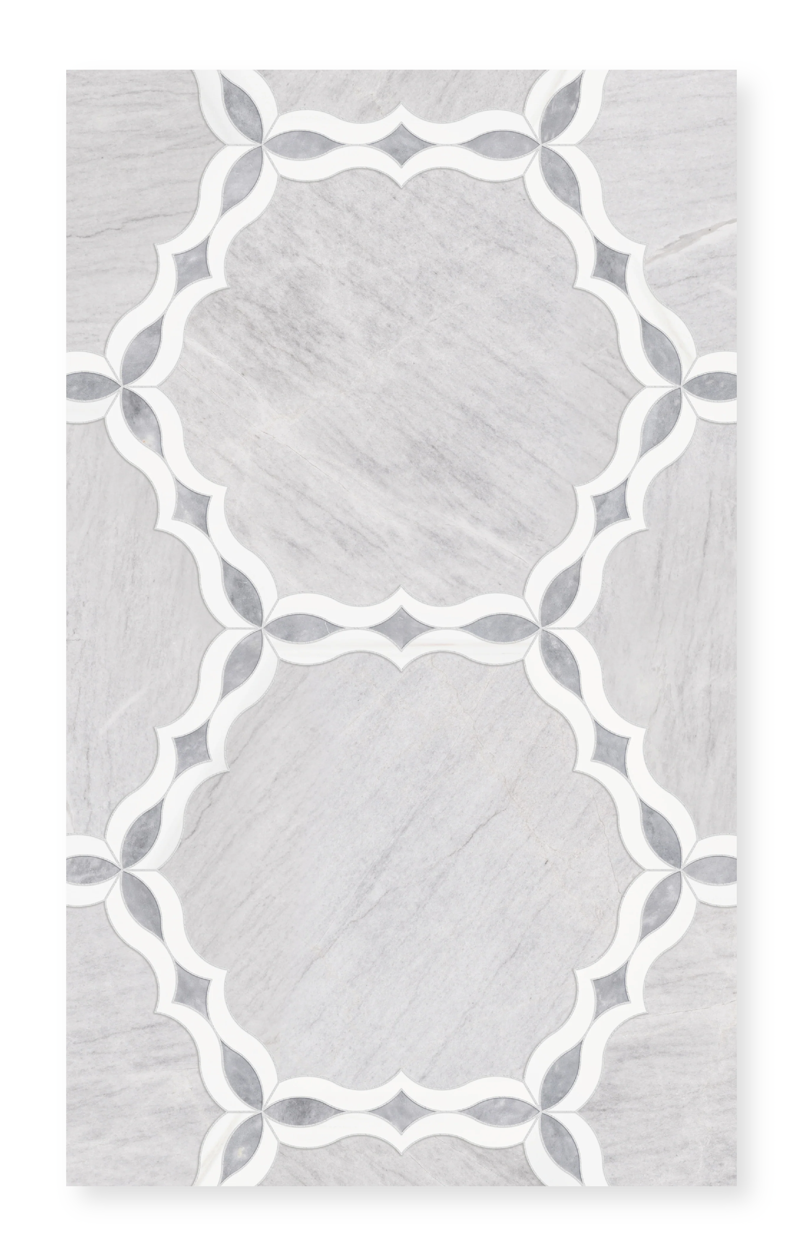 Sovana is a sophisticated waterjet marble mosaic cut by high-precision machinery, ensuring flawless geometric patterns and exceptional quality. This elegant mosaic is available in two stunning color palettes, each featuring three premium marble varieties in harmonious honed finishes.