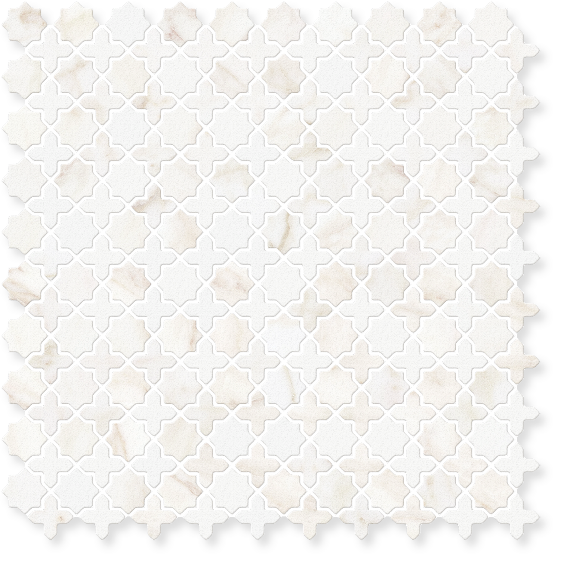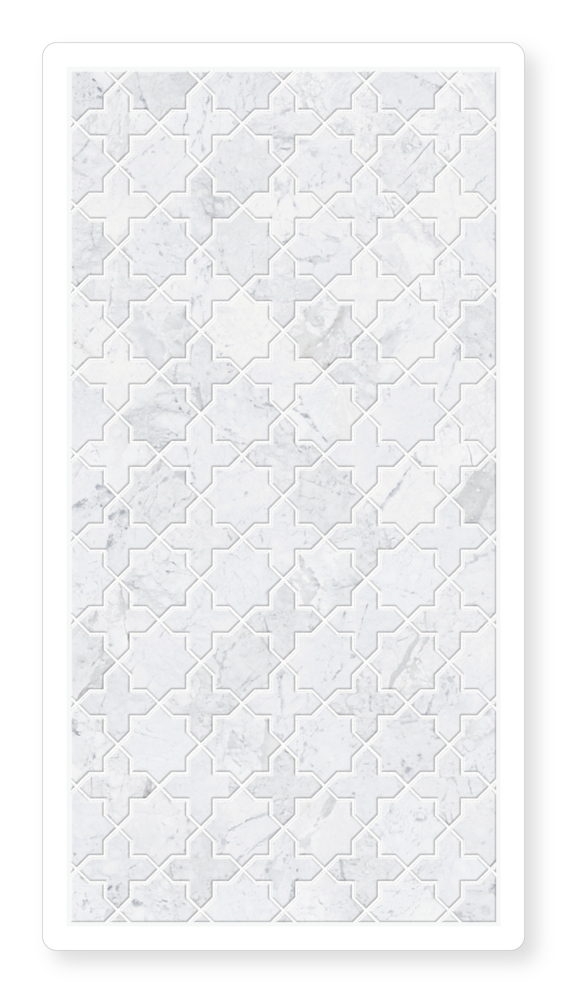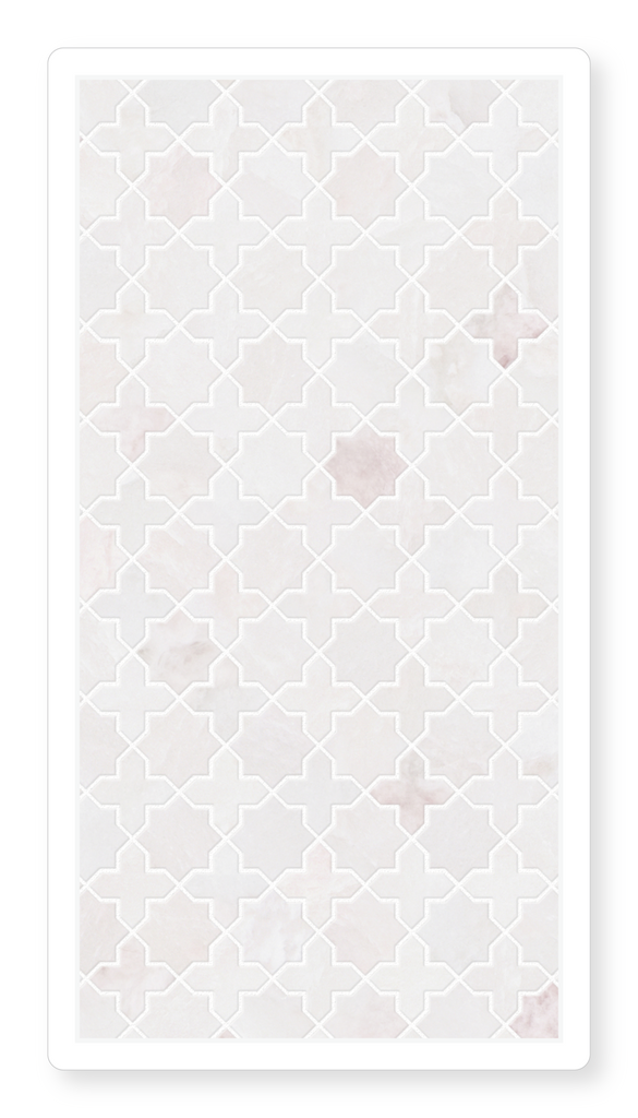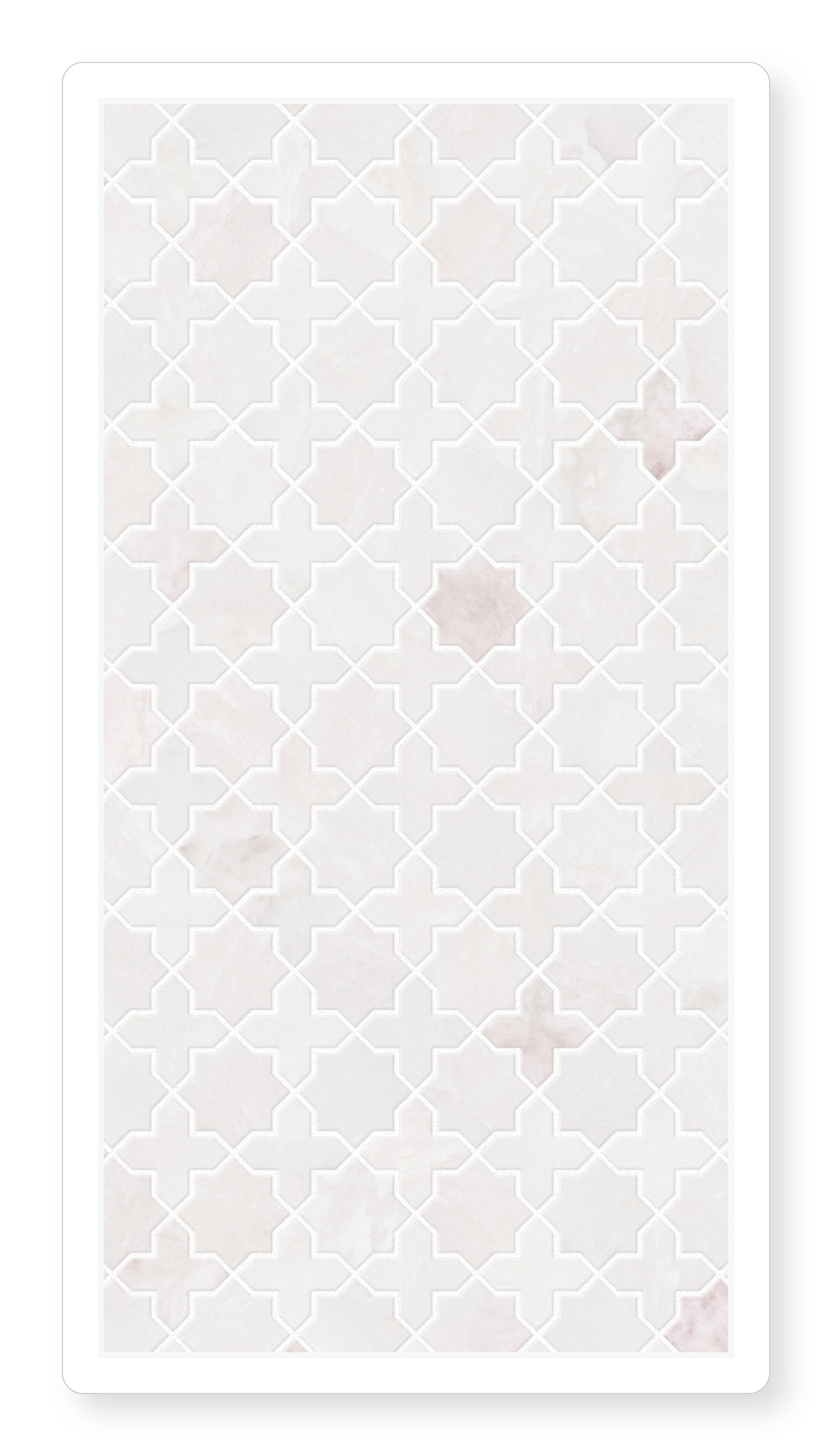 Sultana Crest is an exquisite hand-cut marble mosaic crafted by specially trained artisans. Each piece showcases exceptional skill and attention to detail, combining five premium marble varieties with varied finishes that create a sophisticated interplay of texture, color, and visual interest.
