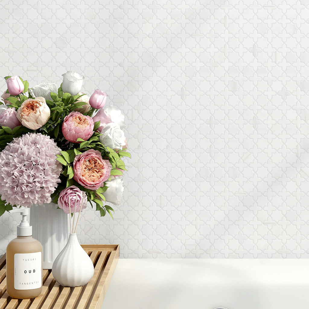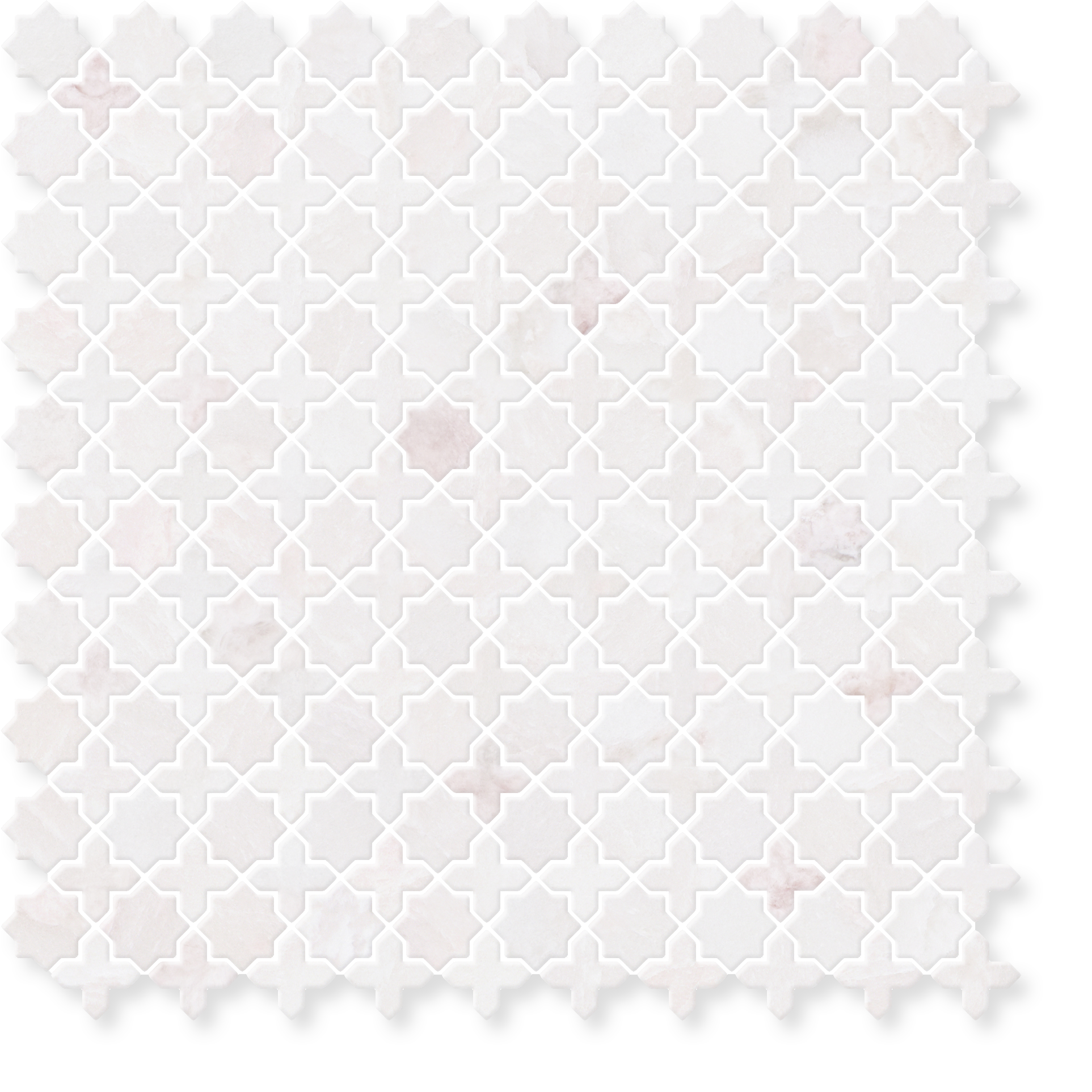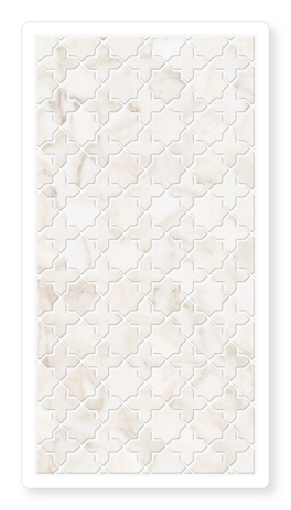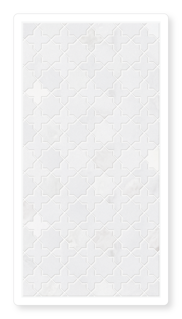 Sultana Crest is an exquisite hand-cut marble mosaic crafted by specially trained artisans. Each piece showcases exceptional skill and attention to detail, combining five premium marble varieties with varied finishes that create a sophisticated interplay of texture, color, and visual interest.