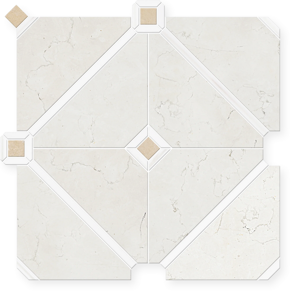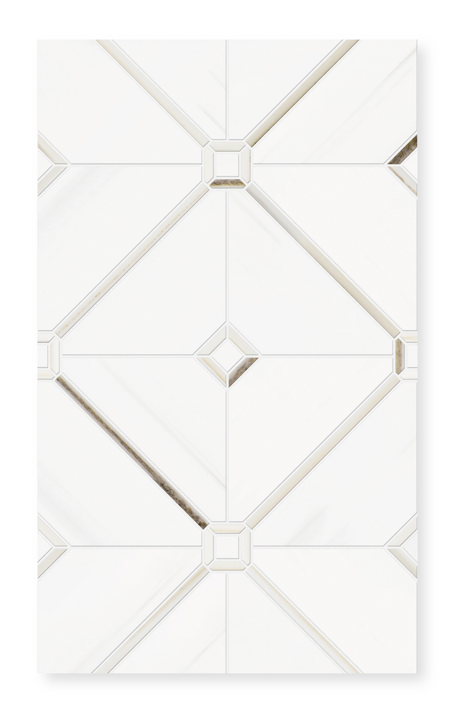 Sylora Hand-Cut Marble Diamond Mosaic Sample showcases the exceptional artistry of hand-cut marble craftsmanship. This sample features an elegant diamond pattern in premium marble, allowing you to experience the quality and beauty before your full order.