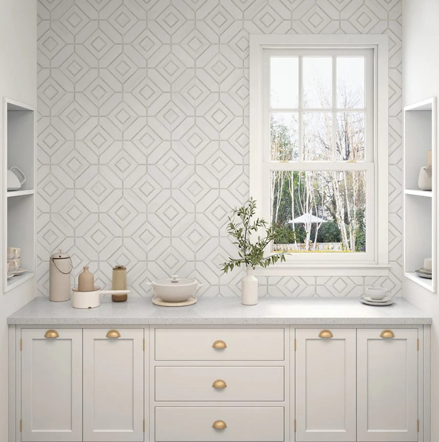 Tranquil - Hand-Cut Marble Diamond Mosaic 12" x 12"