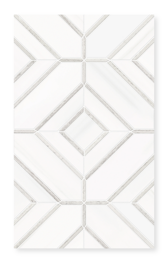 Experience the artisan craftsmanship and serene beauty of Tranquil before committing to your full order. This sample showcases our hand-cut marble diamond mosaic, meticulously crafted by specially trained artisans.
