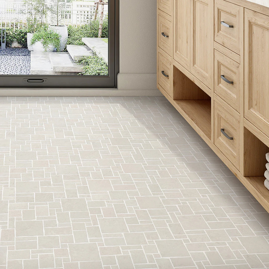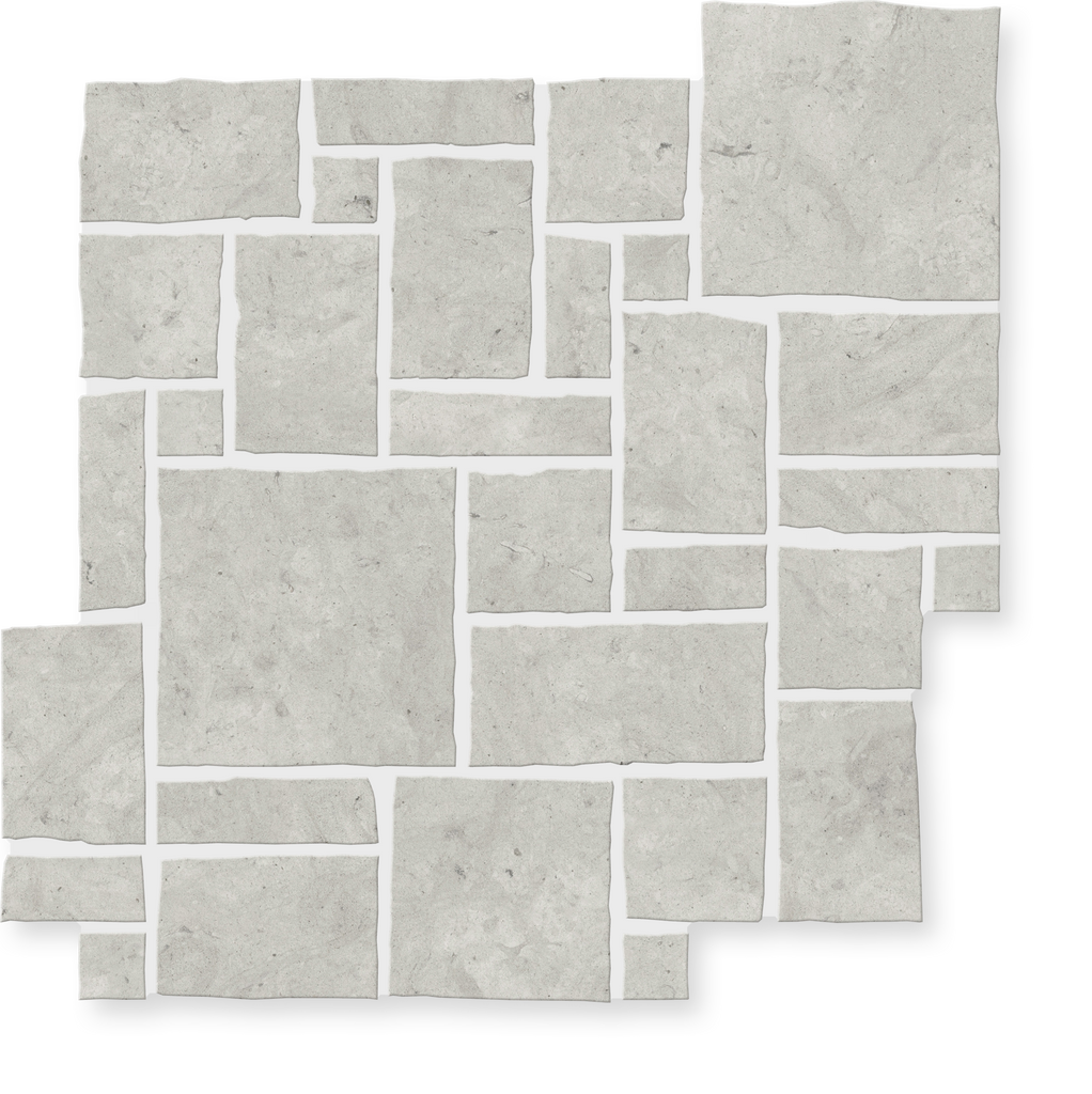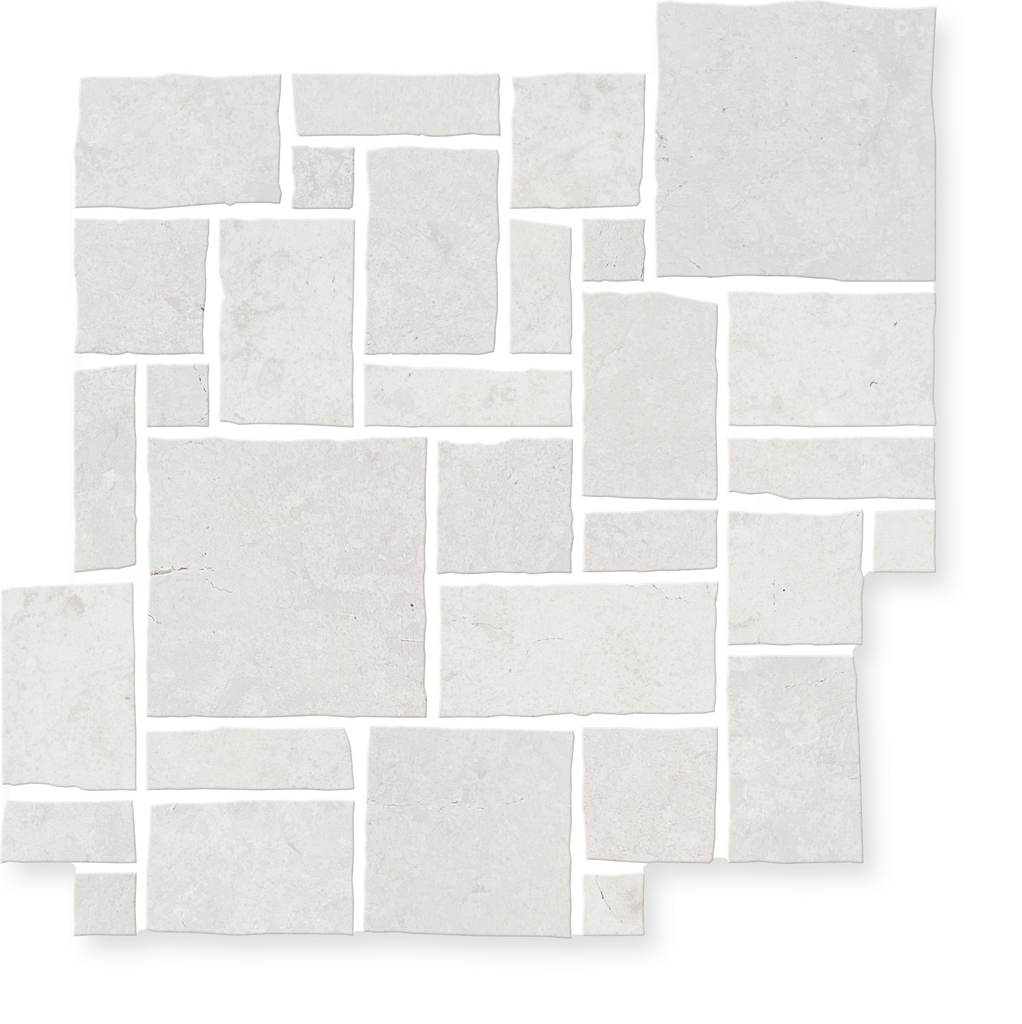 Ultra Villa is an exquisite hand-cut marble mosaic crafted by specially trained artisans. Each piece showcases exceptional skill and attention to detail, featuring three premium stone varieties with honed and brushed finishes combined with broken edge detailing that creates organic texture and sophisticated visual depth.