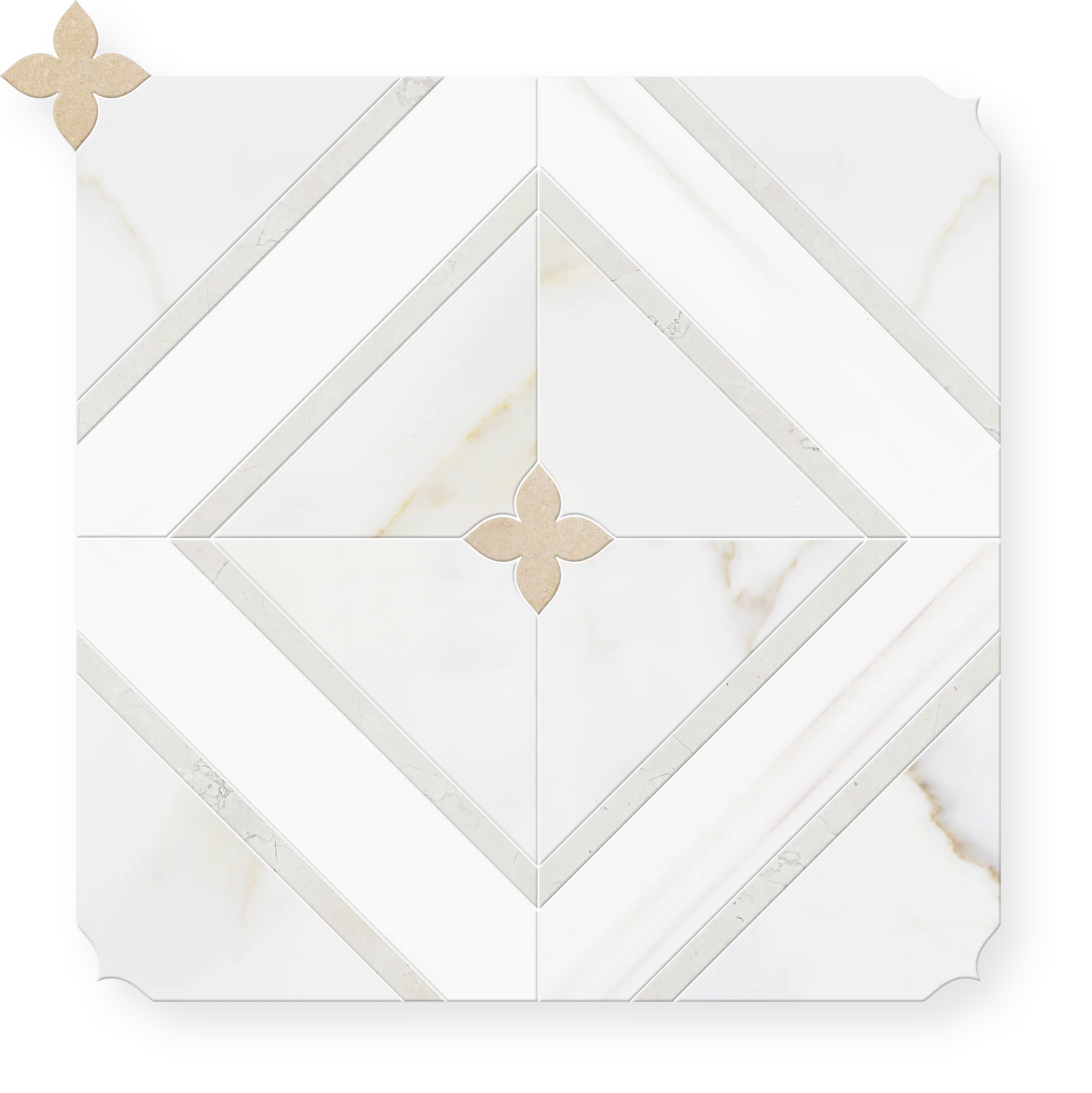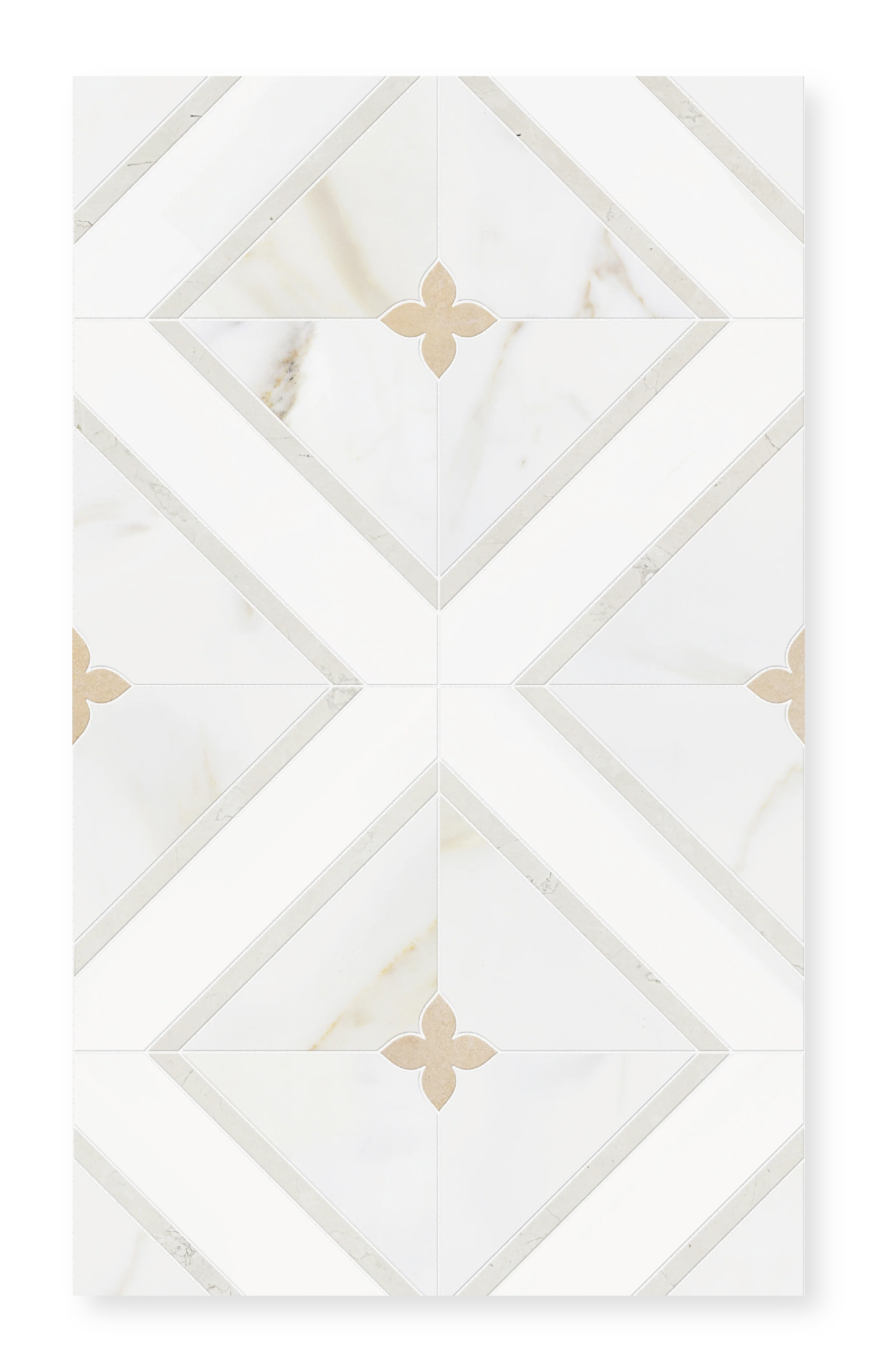 Veya is a magnificent marble mosaic that combines the precision of waterjet technology with the artistry of hand-cutting by specially trained artisans. This exceptional design features four premium marble varieties with contrasting finishes, creating a sophisticated interplay of texture and luminosity.