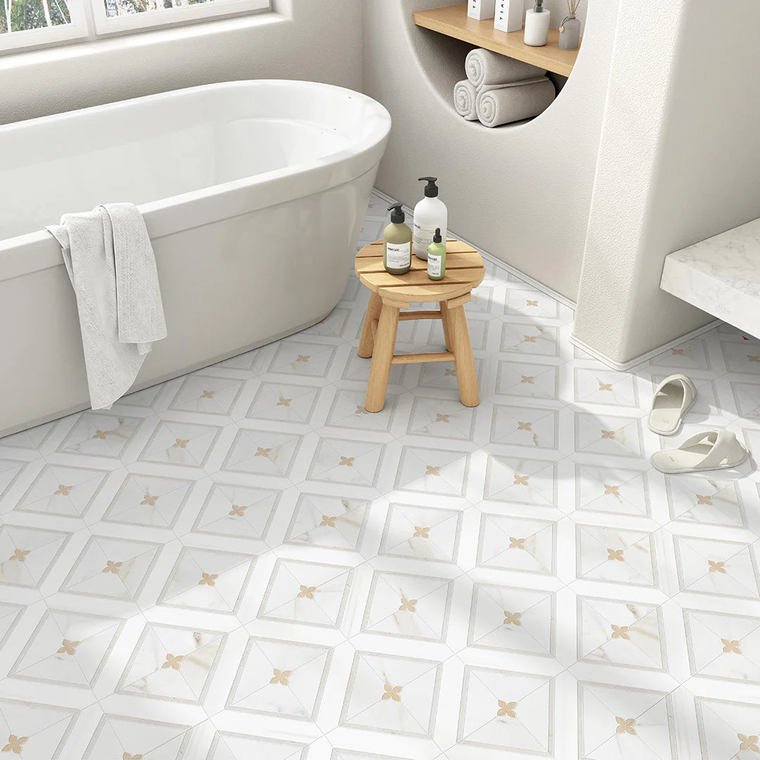 Veya - Waterjet and Hand-Cut Diamond Marble Mosaic 12" x 12"