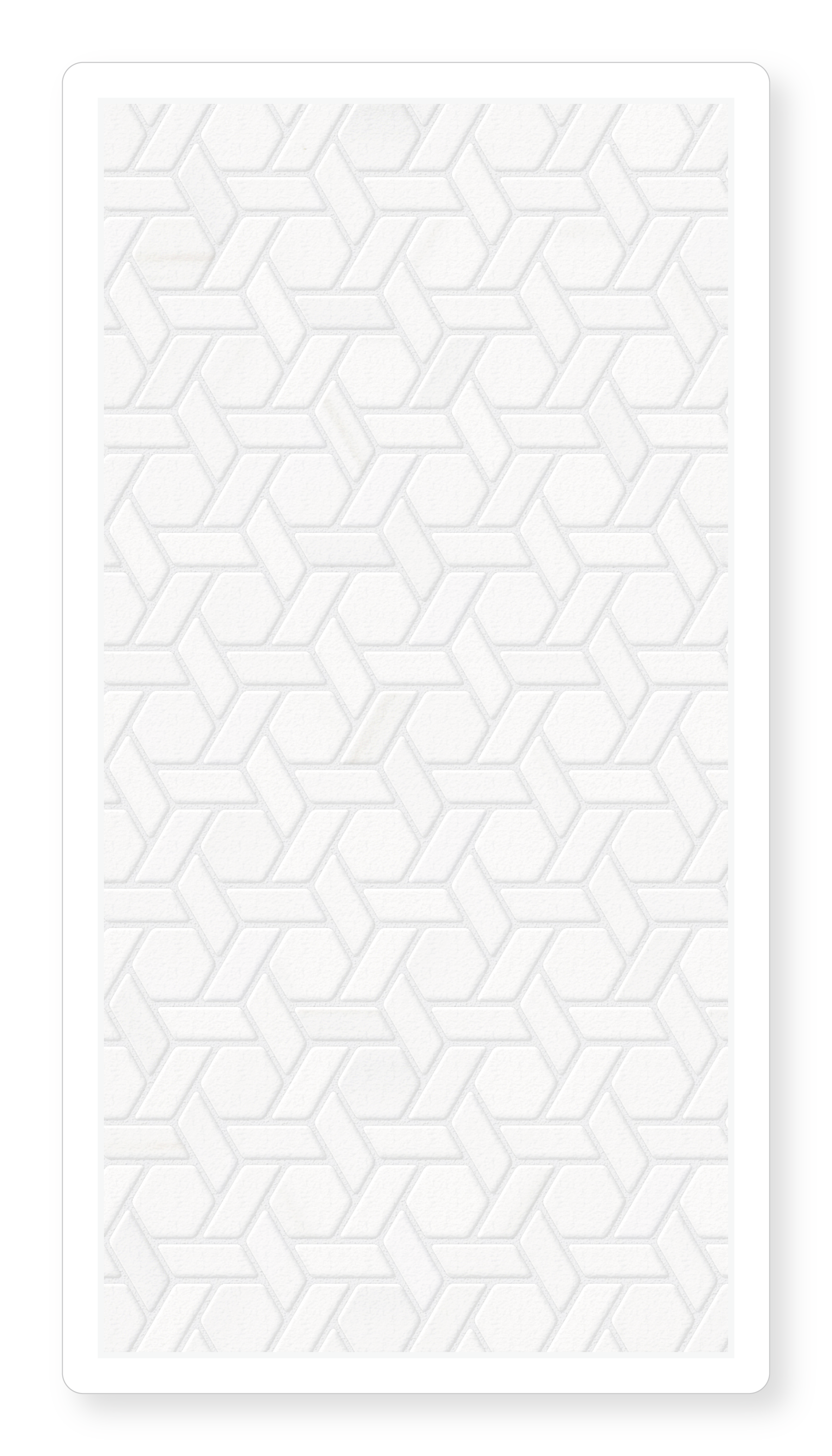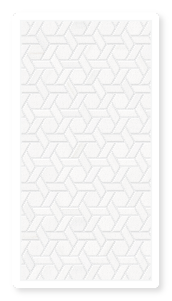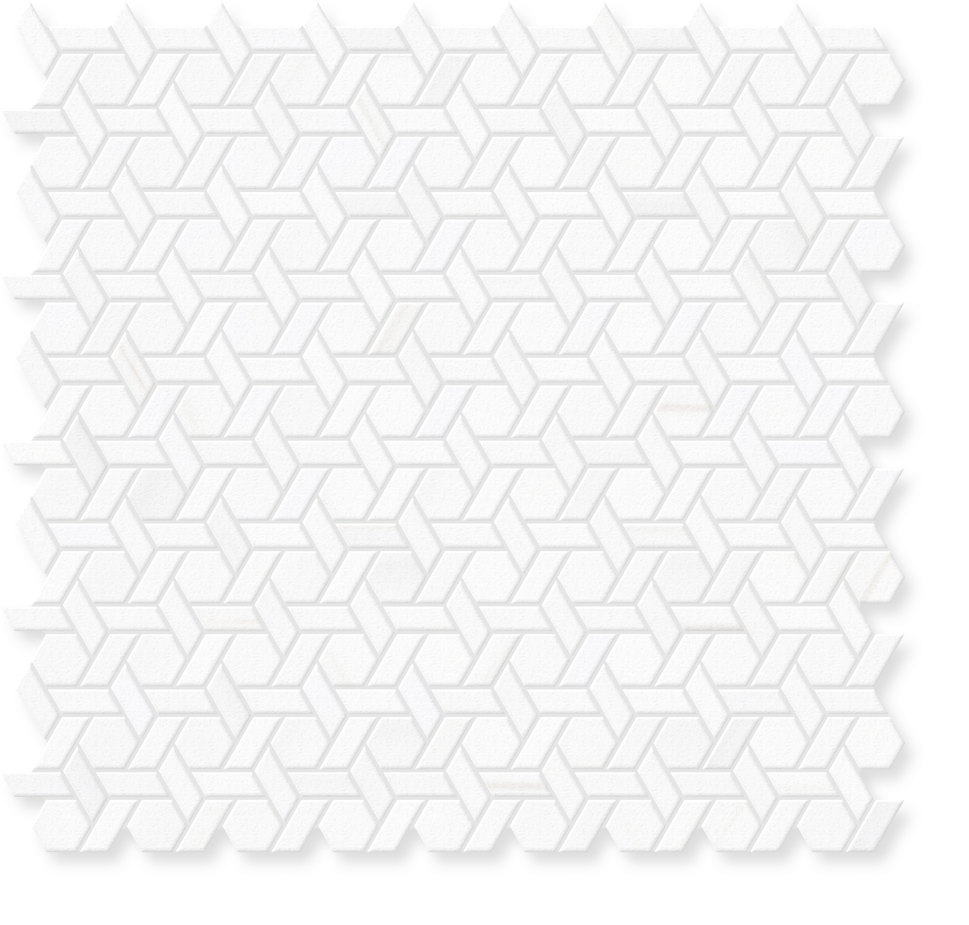 Weave Hexagon is an exquisite hand-cut marble mosaic featuring a sophisticated weave pattern in hexagonal form. Crafted by specially trained artisans, each piece showcases exceptional skill and attention to detail, featuring pristine Bianco Dolomite marble in a tumbled finish that creates natural texture and timeless elegance.